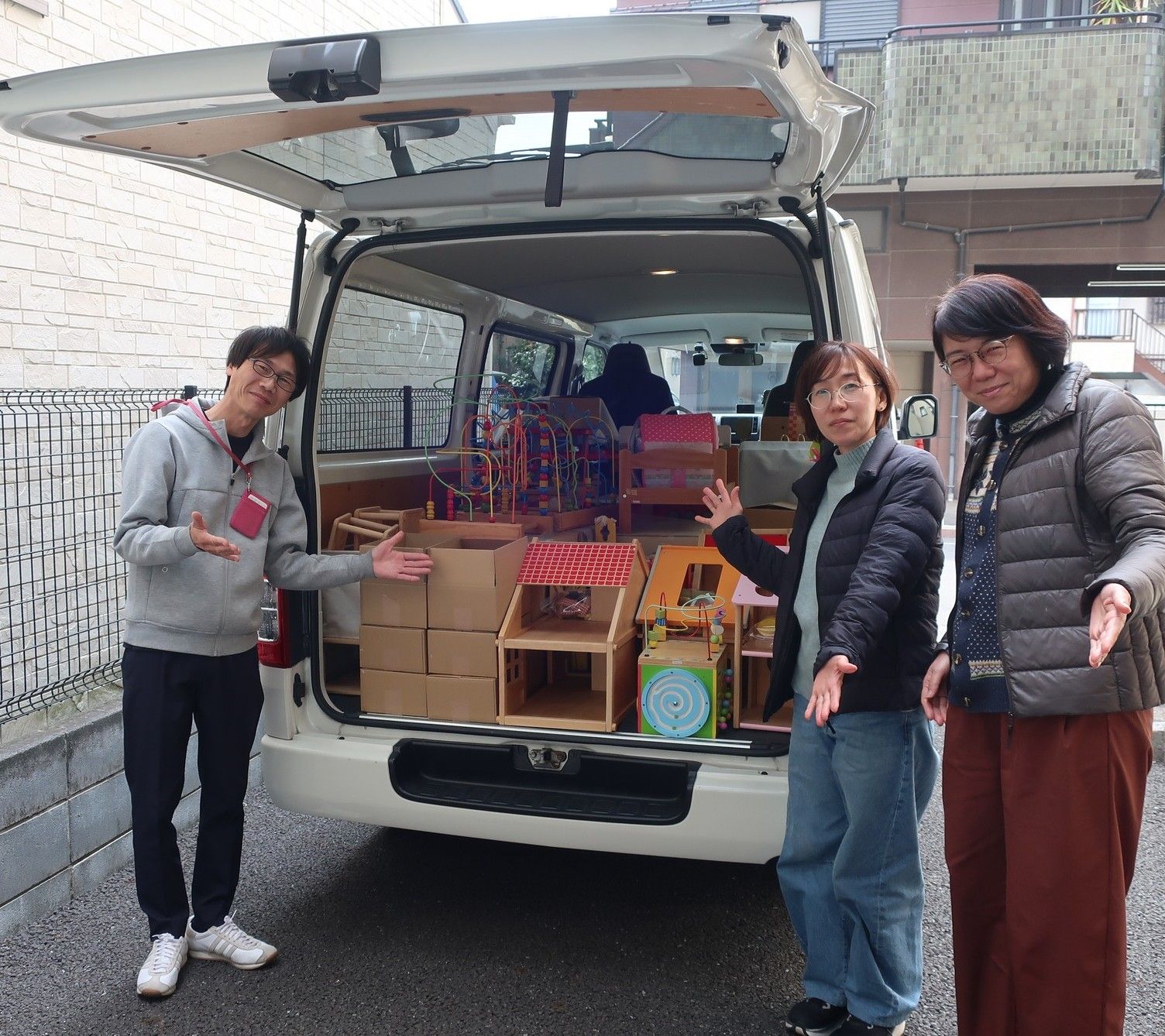 寄付を受けたおもちゃなどをおもちゃ図書館に届ける応援