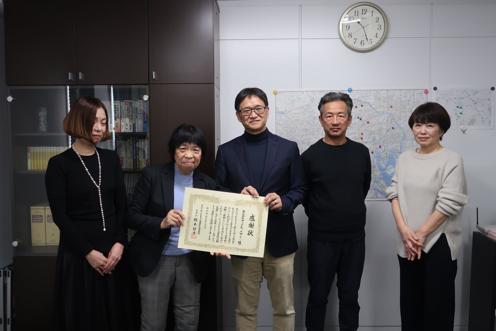 ・2月6日、港区虎ノ門にある㈱アックス・メアリー様の事務所にお伺いしました。昨年の12月26日に アックス・メアリー様から多大なご寄付をいただき、この日感謝状をお届けしたものです。