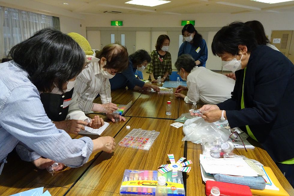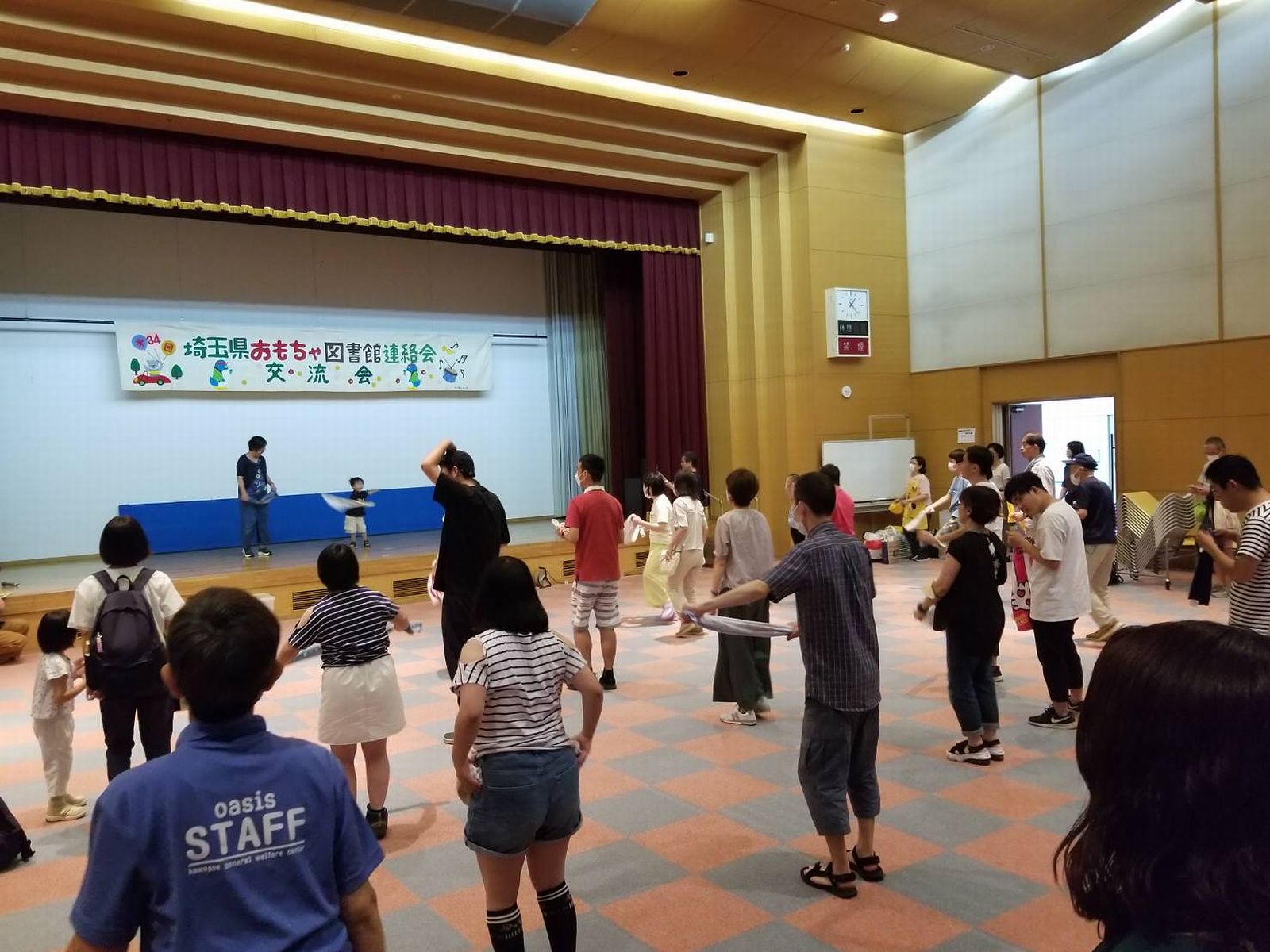 7月17日(月)、埼玉県障害者交流センターで「埼玉県おもちゃ図書館連絡会交流会」が開かれました。100名を超える参加者が、参加おもちゃ図書館紹介や、カラクリ装置体験&ミニゲームスタンプラリー、昼食&ミニバザー、マイバッグ&うちわ&簡単工作作りを楽しみました。