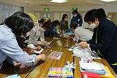 鈴木理事長から、「今子供達のおかれてる環境も変わり、おもちゃ図書館もニーズに合わせて変化している」というお話しがありました。その後ハッピーサーモンというボードゲームをして場が和みました。その後R1の飲料容器でつくるがらがら、ペットボトルにビーズ・鈴などと洗濯ノリ・