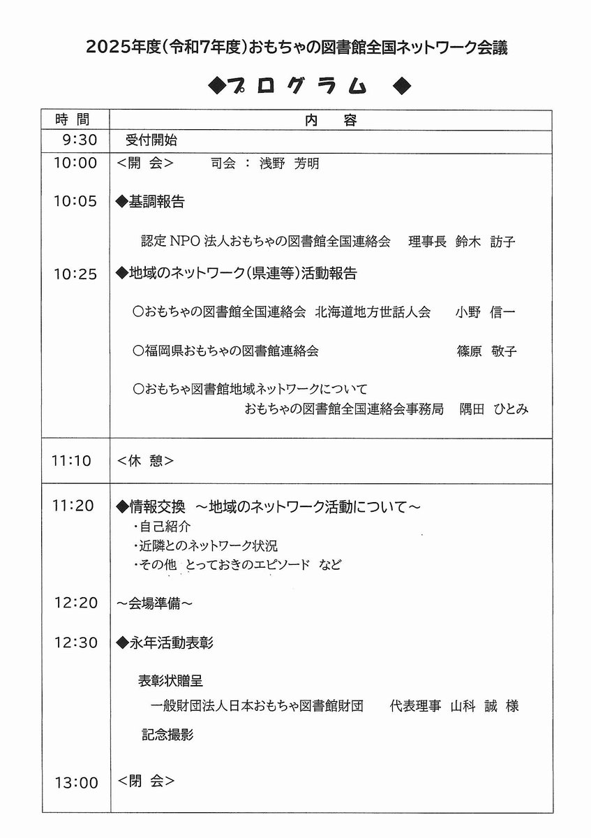[2025/6/28] おもちゃの図書館全国ネットワーク会議開催のご案内 <参加募集>