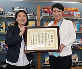 の事務所にお伺いしました。これは、おもちゃ図書館活動にご協力いただいたことに対し、感謝状をお届けしたものです。小泉理事長から、松本健代表取締役に、感謝状をお渡しし、多くのおもちゃ図書館からのお礼の気持ちをお伝えしました。