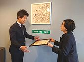 の本社にお伺いし、佐藤靖代表取締役に小泉理事長から感謝状を贈呈いたしました。