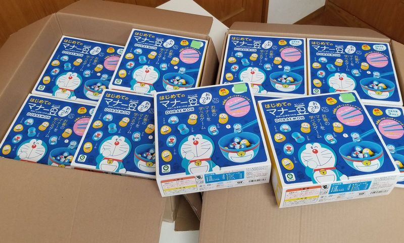 より、ドラえもんのはじめてのマナービーンズが合計24箱届きました。おうち時間の多い今、ご家庭へ貸出ししたらとても喜ばれると思います。ありがとうございました。