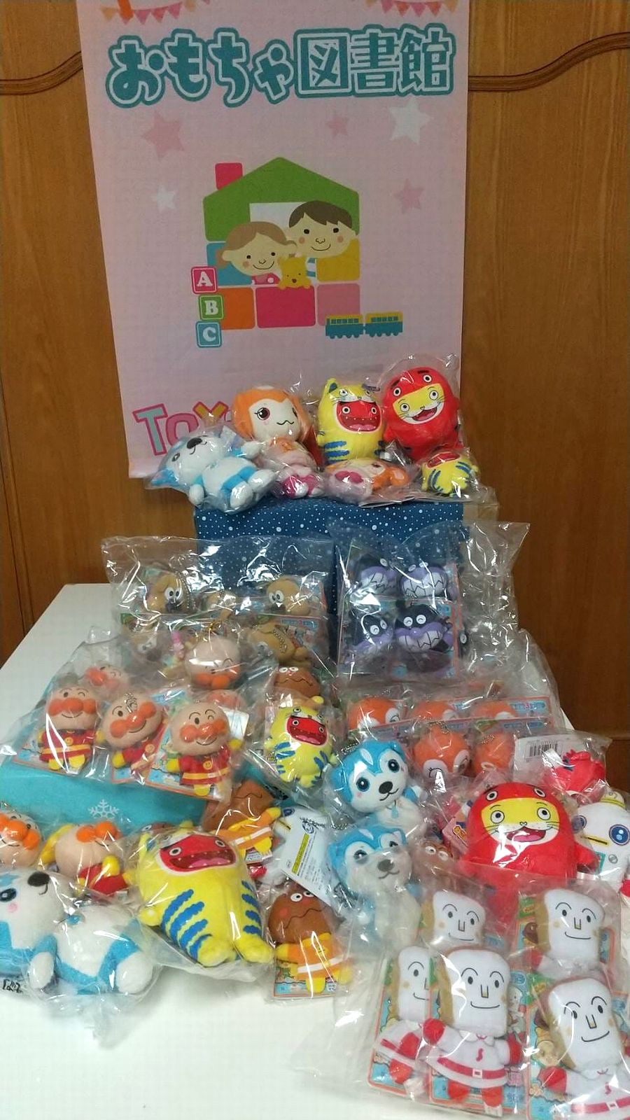 からお送りいただいたもので、チアフルうさちゃんやくまちゃん、部屋ともワンちゃんレッドリーバーなど、9種類20個です。可愛い表情で動き回る姿が、想像できます。きっとおもちゃ図書館の子どもたちが大喜びします。ありがとうございました。