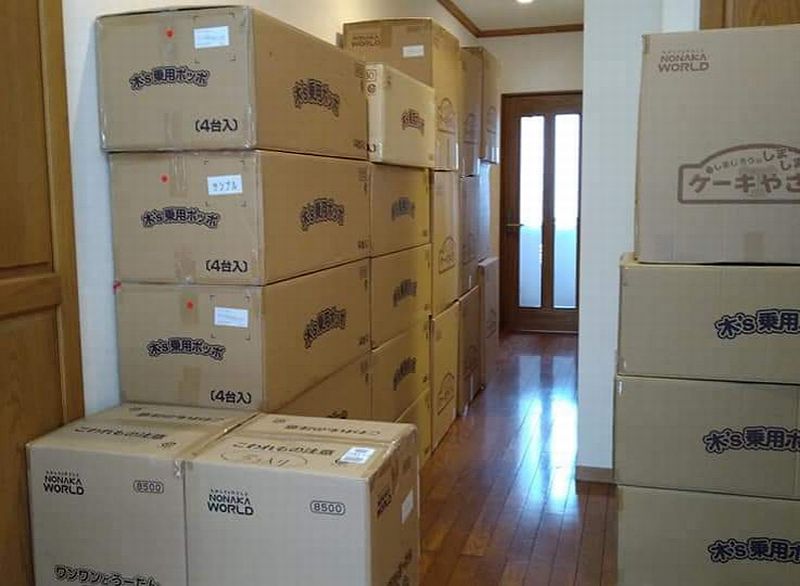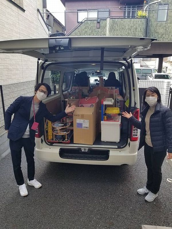 6月25日午後、寄贈おもちゃが、軽貨物自動車2台でとどきました。